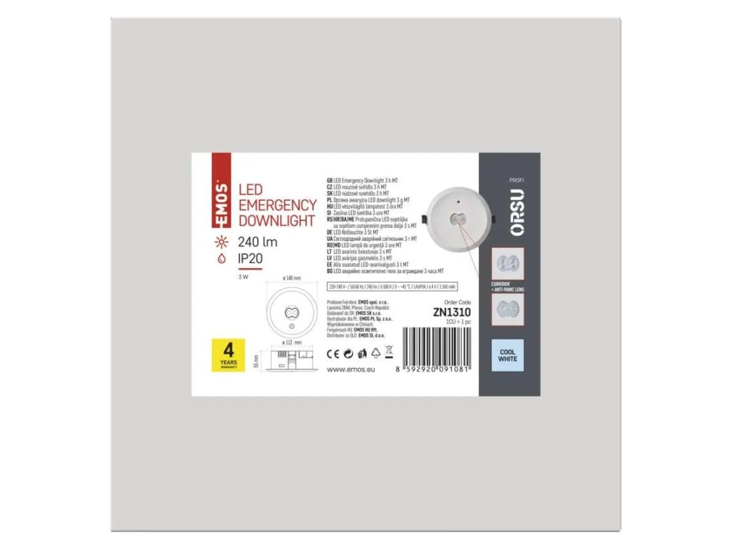 Núdzové svietidlo ORSU 3W 240lm 3h MT