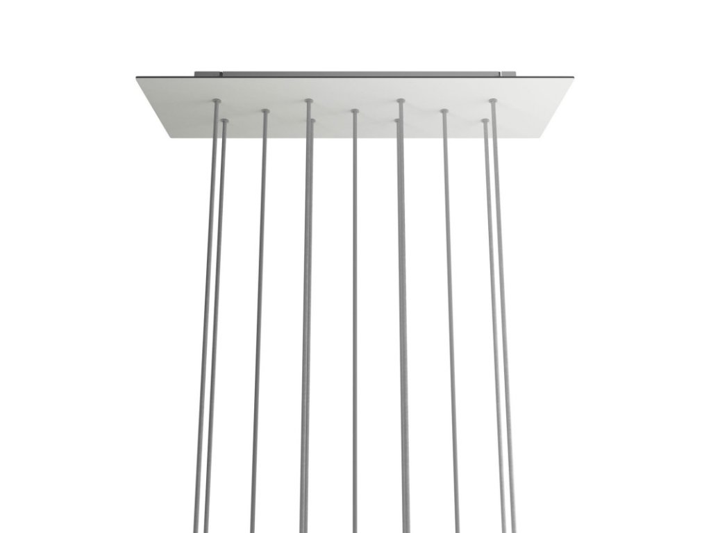 Rose-One je patentovaný systém stropných baldachýnov od Creative-Cables doplnený o skrytú káblovú priechodku, ktorý vám vďaka množstvu dostupných prvkov a dekorov umožňuje vytvoriť nápadité závesné lampy, ktoré budú presne podľa vášho štýlu. 11-otvorová obdĺžniková verzia je ideálna na vytvorenie viacerých závesov, ktoré sa dajú použiť nad schodiskom, nad veľkým jedálenským stolom, vo vnútri moderného podkrovného bytu. Stačí sa pohrať s dĺžkou ramien a veľkosťou a povrchovou úpravou žiaroviek. Vytvorte si závesné svietidlo svojich snov! Rose-One má bočné otvory, ktoré umožňujú sériové zapojenie viacerých baldachýnov, alebo zapojenie lampy od vzdialeného elektrického prívodu. Kryt stropného baldachýnu je vyrobený z hliníkového kompozitného panelu Dibond®, ktorý zaručuje nielen dizajnový zážitok, ale má aj vysokú odolnosť pri nízkej hmotnosti. Zvoľte si 11-otvorový obdĺžnikový XXL stropný baldachýn Rose-One systému a vytvorte si závesnú lampu podľa vašich predstáv: