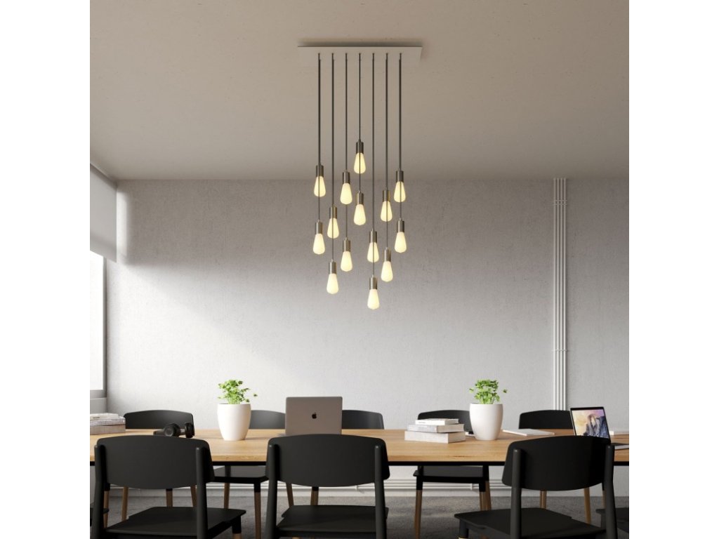 Rose-One je obdivuhodný systém stropných baldachýnov od Creative-Cables, doplnený o skrytú káblovú priechodku, ktorý vám vďaka množstvu dostupných prvkov a dekorov umožňuje vytvoriť unikátne závesné lampy šité na mieru. 14-otvorová obdĺžniková verzia je ideálna na vytvorenie viacerých závesov, ktoré sa môžu použiť nad schodiskom, nad veľkým jedálenským stolom alebo vo vnútri moderného loftového bytu. Stačí nastaviť dĺžku a výšku ramien a vybrať si veľkosť a povrchovú úpravu žiaroviek. Vytvorte si závesné svietidlo svojich snov! Rose-One má bočné otvory, ktoré umožňujú sériové zapojenie viacerých baldachýnov, alebo zapojenie lampy od vzdialeného elektrického prívodu. Kryt stropného baldachýnu je vyrobený z hliníkového kompozitného panelu Dibond®, ktorý zaručuje nielen dizajnový zážitok, ale má aj vysokú odolnosť pri nízkej hmotnosti. Vyberte si 14-otvorový obdĺžnikový XXL stropný baldachýn Rose-One systému a vytvorte si závesnú lampu podľa vašich predstáv: