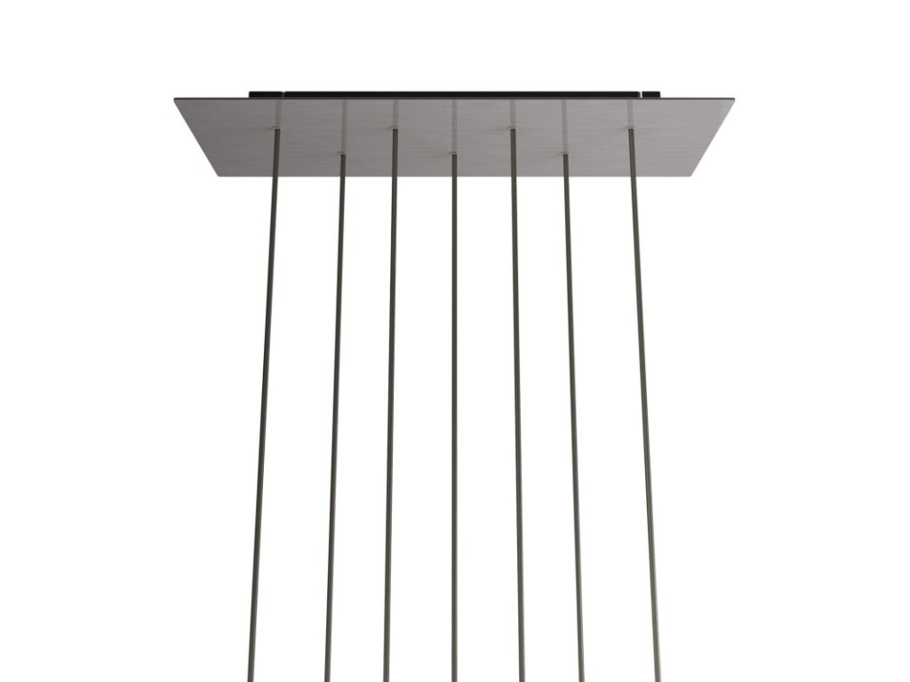 Pohrajte sa s dĺžkami káblov, veľkosťou a povrchovou úpravou žiaroviek a vytvorte si závesné svietidlo s viacerými svetlami as viditeľnými žiarovkami. Dovoľte mu, aby sa stalo ústredným bodom v priestore! Rose-One má bočné otvory, ktoré umožňujú sériové zapojenie viacerých baldachýnov, alebo zapojenie lampy od vzdialeného elektrického prívodu. Kryt stropného baldachýnu je vyrobený z hliníkového kompozitného panelu Dibond®, ktorý zaručuje nielen dizajnový zážitok, ale má aj vysokú odolnosť pri nízkej hmotnosti. Zvoľte si 7-otvorový obdĺžnikový XXL stropný baldachýn Rose-One systému a vytvorte si závesnú lampu podľa vašich predstáv: