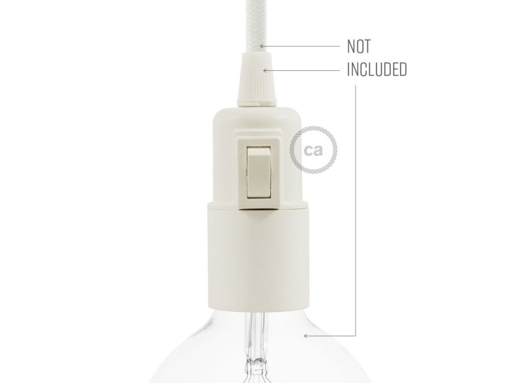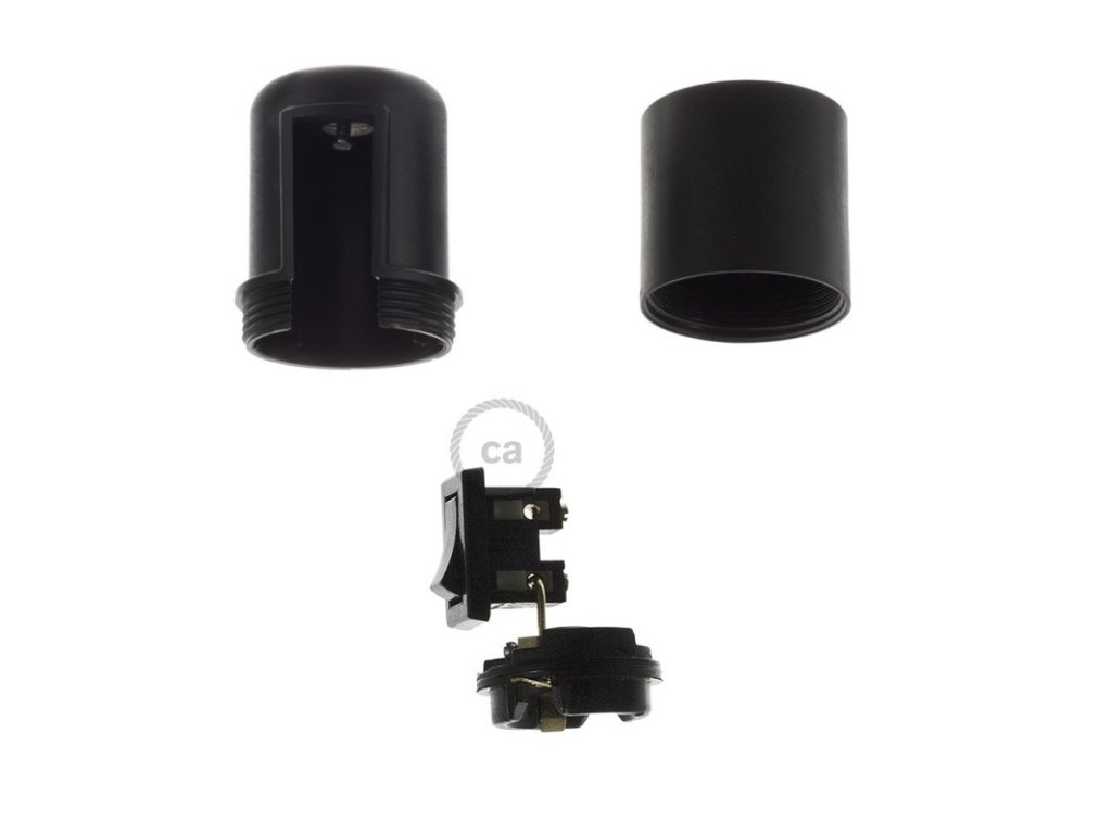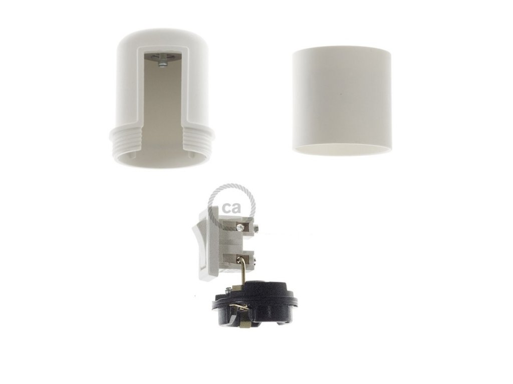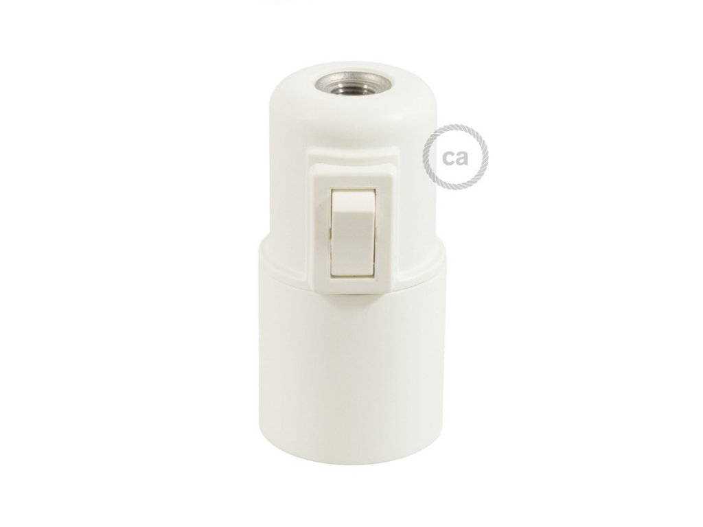 Objímka z termoplastu E27 s vypínačom je užitočná pre zostavenie nástennej, stolnej alebo stropnej lampy Termoplast je ľahšia ako bakelit a má matný povrch. Vypínač na lampe umožňuje zapnúť alebo vypnúť svetlo, a to aj v prípadoch, keď nie je k dispozícii nástenný, alebo in-line vypínač.