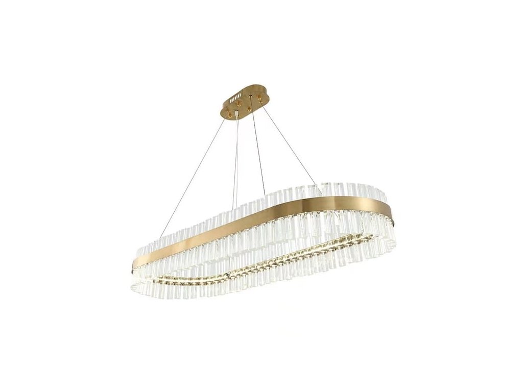 Moderný oválny, krištáľový luster z kolekcie krištáľových svietidiel Crystal. Táto kolekcia sa vyznačuje neobvyklými tvarmi, ktoré si ale zachovávajú eleganciu s využitím kovových a krištáľových prvkov najvyššej kvality s trojuholníkovým prierezom. Ide o číry krištáľ triedy K9. V tejto sérii nájdete aj nástenné svietidlo.