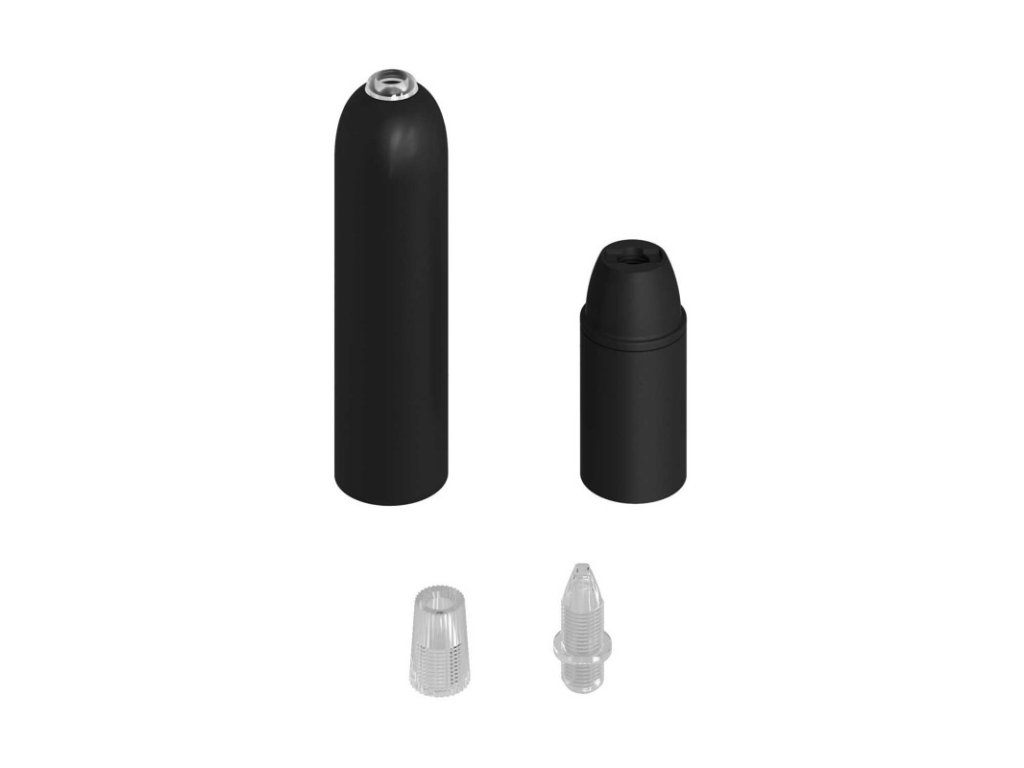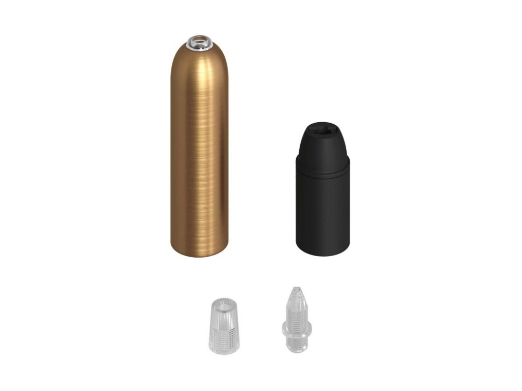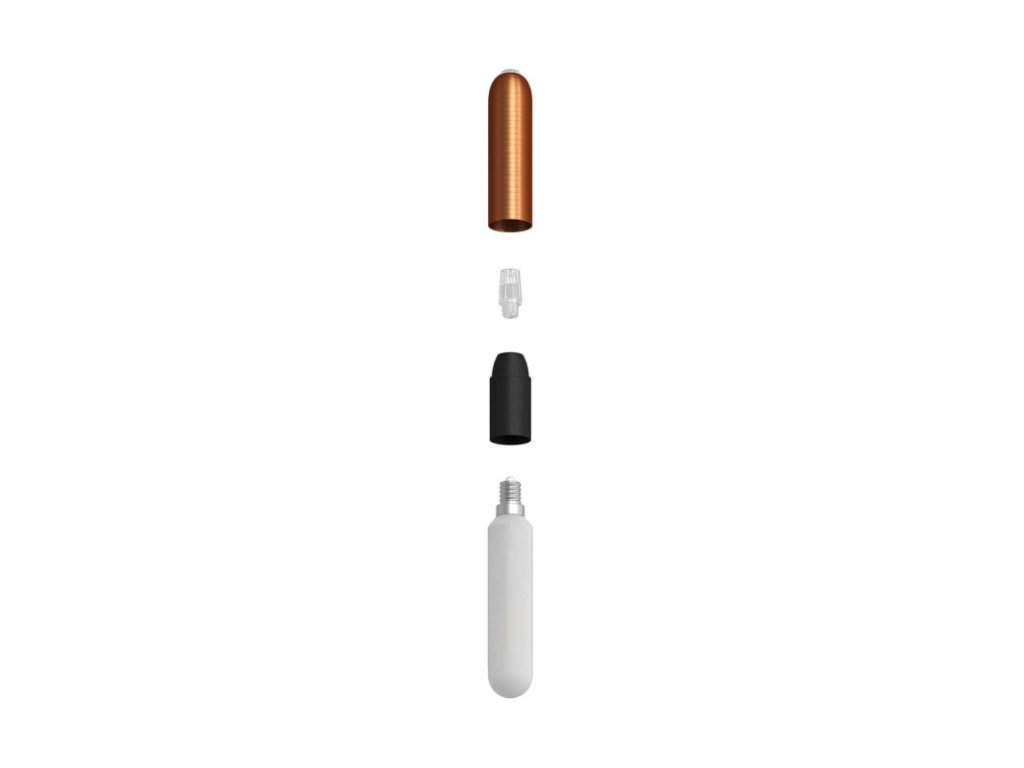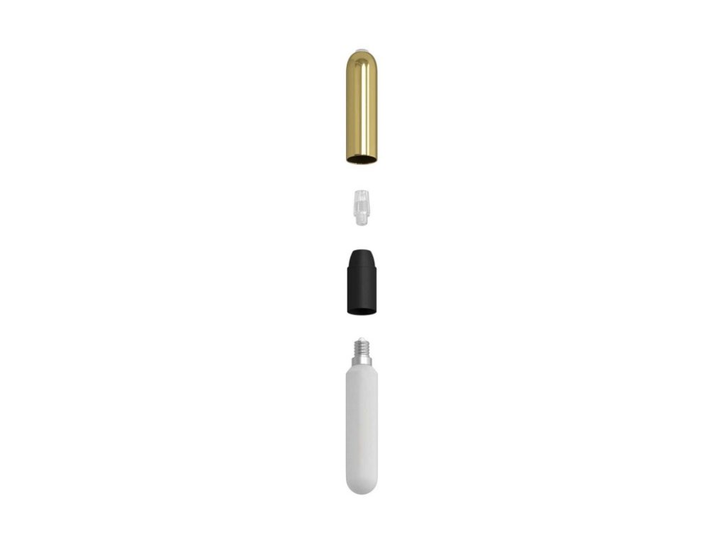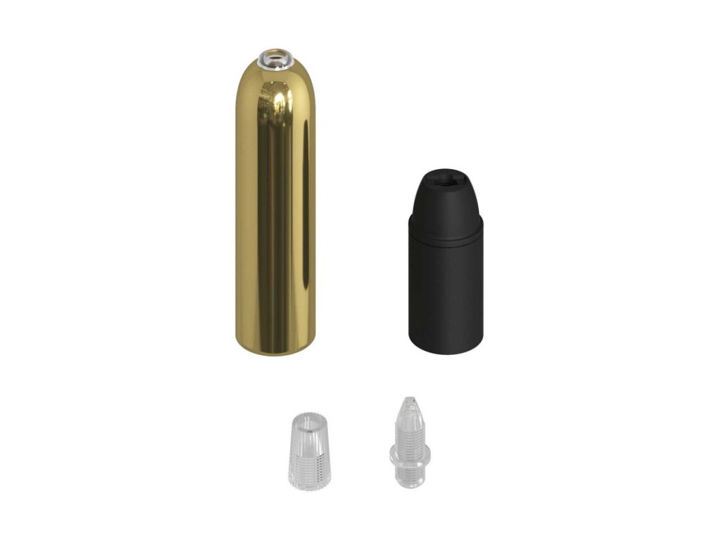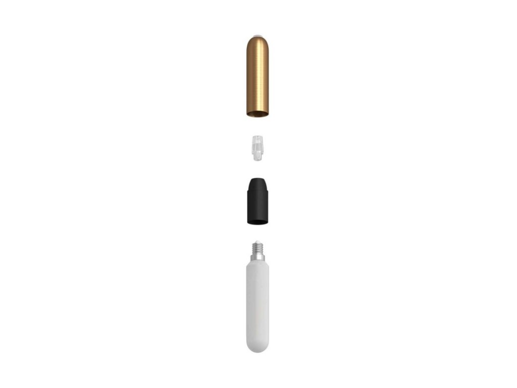 UPOZORNENIE: Žiarovka NIE JE súčasťou balenia Objímka je zložená z kovovej krytky, E14 objímky z termoplastu a káblovej priechodky. Je vhodná na vytvorenie závesných svietidiel v kombinácii s textilnými káblami a stropnými baldachýnmi, ktoré nie sú súčasťou balenia.