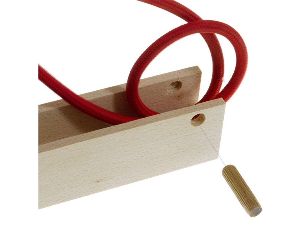 Pinocchio nie je len nástenný držiak: je to riešenie Creative-Cables na zavesenie akejkoľvek lampy s úpravou vzdialenosti od steny. Pinocchio bol navrhnutý tak, aby umožňoval priechod lámp, ktoré sú už zapojené: kábel nemusí prechádzať otvormi, ale je navinutý okolo vrúbkovaných drevených podpier, ktoré sú vložené na oboch koncoch.