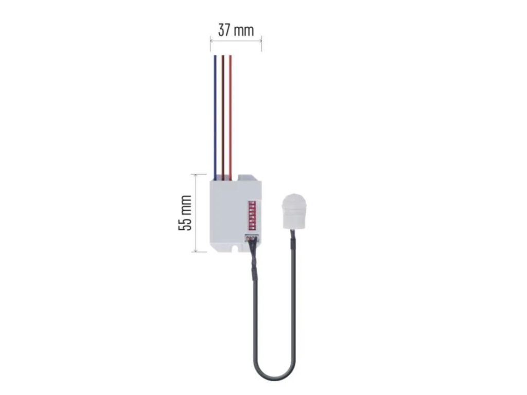 Infračervený PIR senzor slúži na automatické spínanie.svietidiel a zdrojov vo vnútornom priestore. Senzor reaguje na teplo pohybujúcich sa osôb v detekčnom poli. Pripojené zariadenie sa po narušení detekčného poľa automaticky zapne na nastavenú dobu. Toto čidlo vďaka svojej veľkosti, je vhodné pre montáž do interiéru kde sa ľahko skryje. Napríklad na spínanie osvetlenia na schodoch alebo v chodbe.