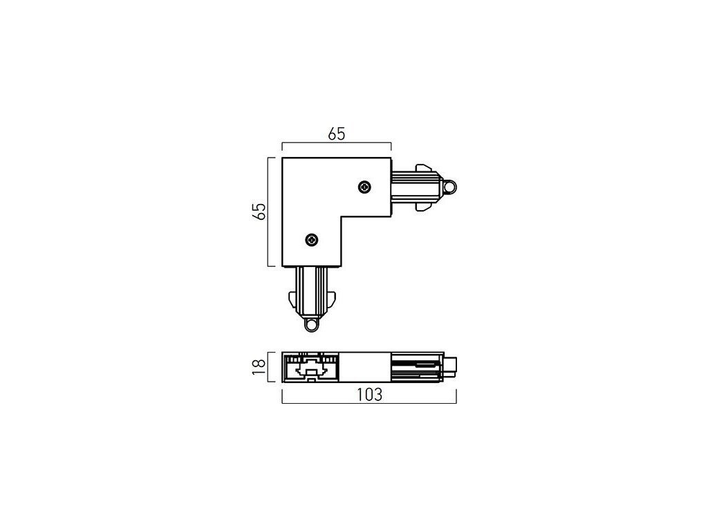 Pravý napájač v tvare "L" pre jednofázový koľajnicový systém MINI TRACK.