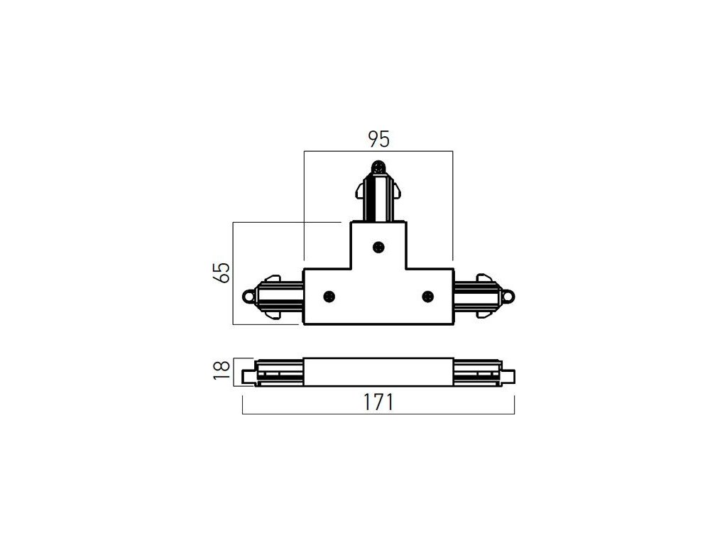 Pravý napájač "T" pre jednofázový koľajnicový systém MINI TRACK.