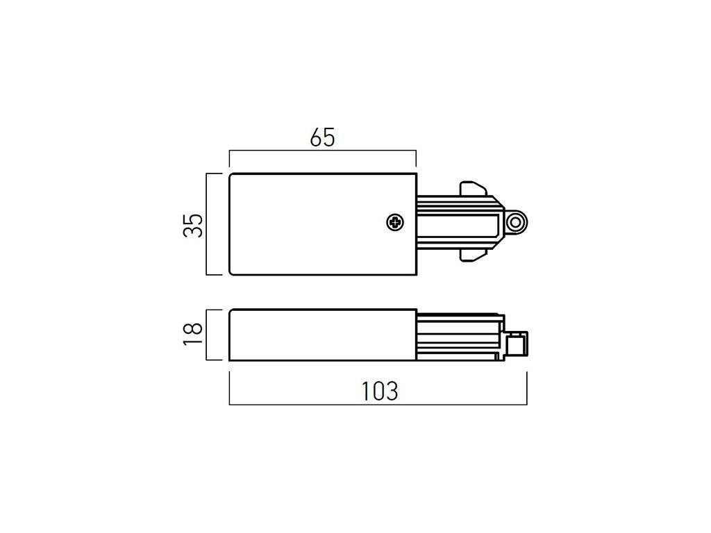 Pravý napájač pre jednofázovú koľajnicu MINI TRACK.