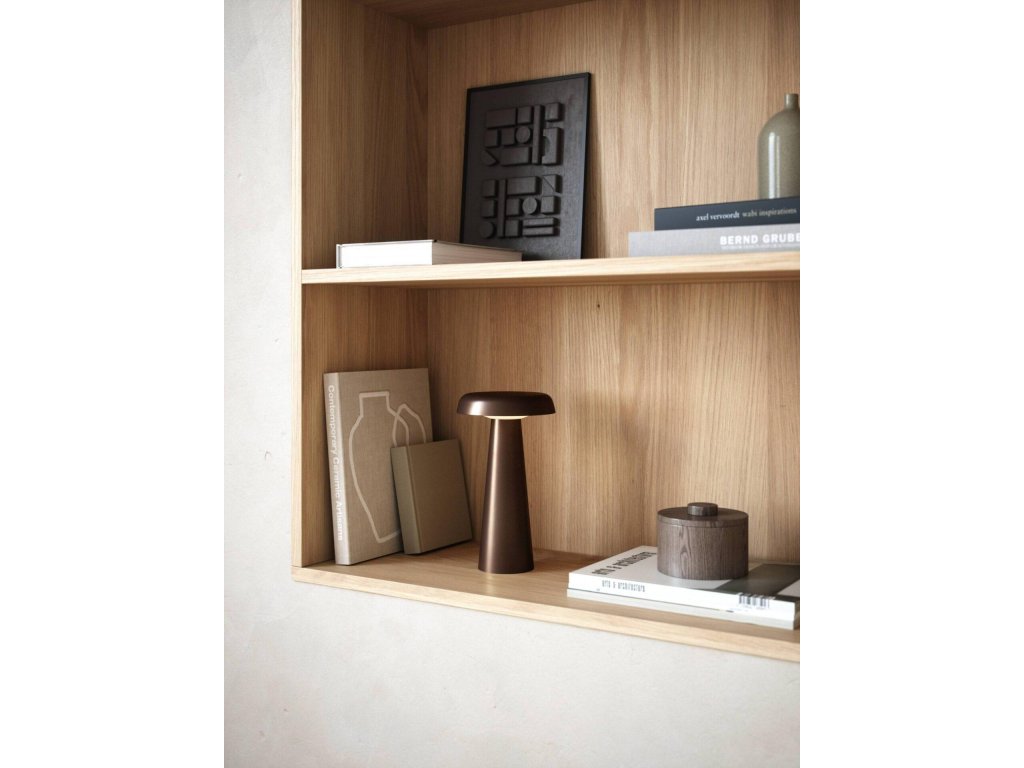 Dizajn je jednoduchý, napriek tomu výrazný s krásnym, jednotným eloxovaným povrchom zhora nadol. Lampa sa ľahko nabíja pomocou priloženého USB kábla. V ponuke je v dvoch farebných variantoch - leštená mosadz a antracit.