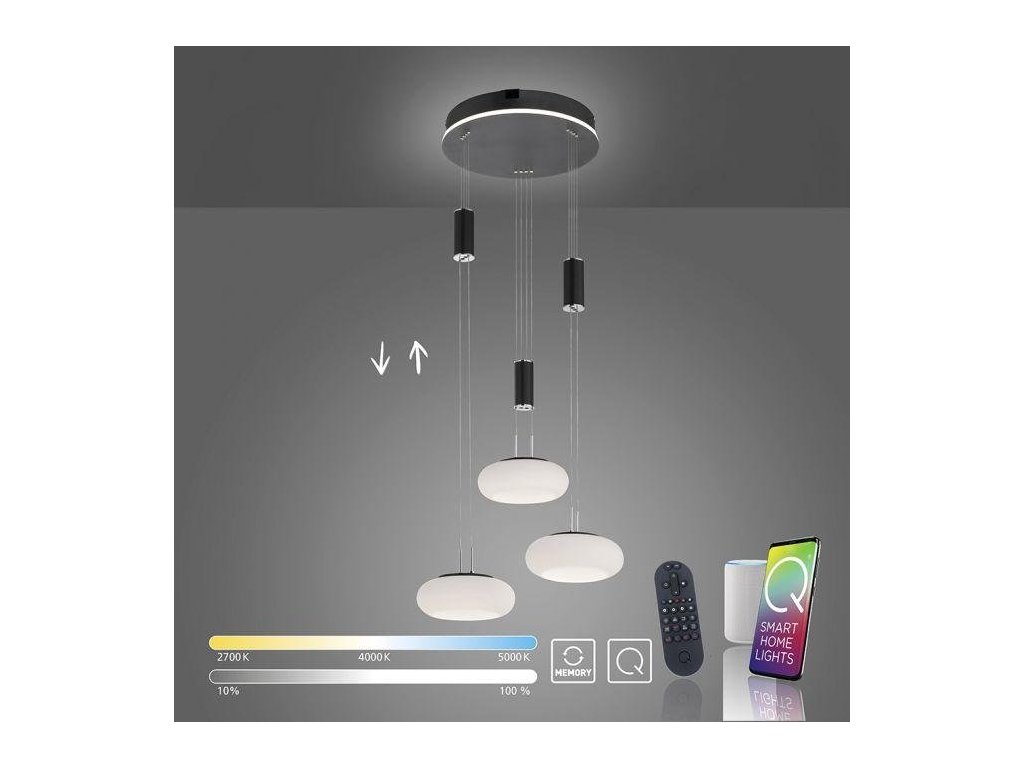 Q-ETIENNE Q závesné svietidlo Smart Home, čierna, kruhové, 3 ramenné ZigBee 2700-5000K - PAUL NEUHAUS