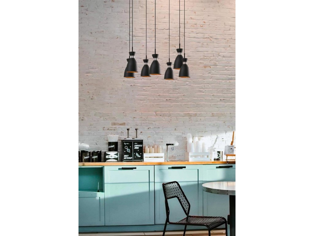 RETRO 7L závesné svietidlo, čierna a meď - FARO