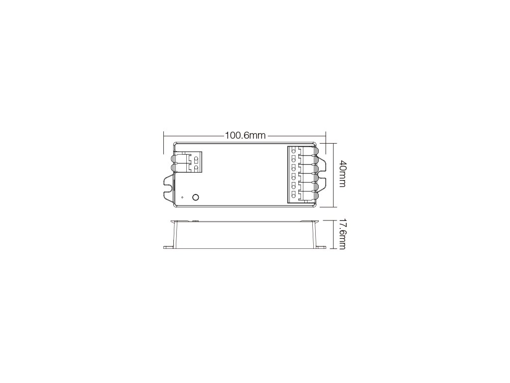 Univerzálna riadiaca jednotka Mi-Light E3-RF s páčkovou svorkovnicou umožňuje ovládanie RGB, RGBW a RGB-CCT pásikov s napätím 12V-24V a prúdom 12A.
