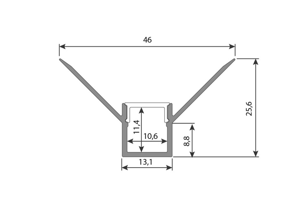 Hliníková základňa pre rohový profil AR určená na montáž do sadrokartónu. Difúzor nie je súčasťou, ale je možné ho dokúpiť samostatne. Profil slúži na ochranu a chladenie LED pásikov so šírkou až 10 mm s maximálnym výkonom 19,2 W/m. Možnosti upevnenia zahŕňajú použitie vrutov alebo lepidla. K verzii s difúzorom je možné dokúpiť aj koncovky. Celková dĺžka profilu je 2 metre.
