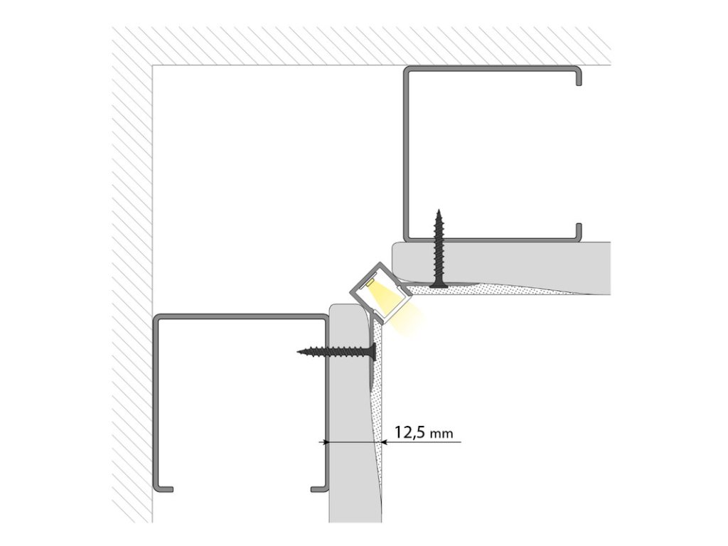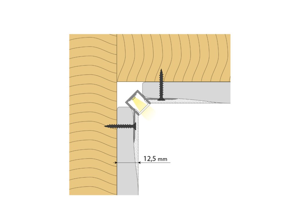 Rohový hliníkový profil AR pre sadrokartón pre LED pásky