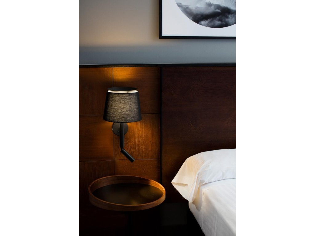 SAVOY nástenná lampa, čierna, s čítacou lampičkou - FARO