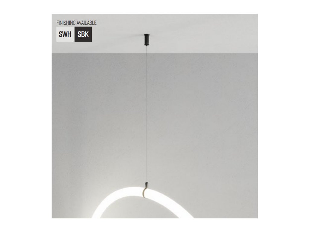 Set pre zavesnú montáž LED pásikov XLOOP 25 mm, skladajúci sa z hliníkového očka a lanka s maximálnou dĺžkou 2 m. Krútené lanko z oceľového drôtu s hliníkovým očkom na uchytenie pásky je elektrostaticky natretý pieskovanou čiernou alebo bielou farbou.