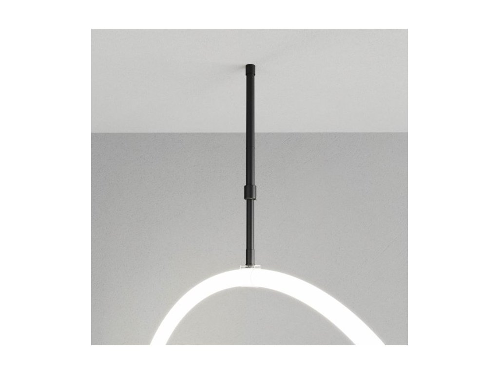 Set pre zavesnú montáž XLOOP LED trubica 18mm, skladajúci sa z nastaviteľnej tyče pre montáž na strop, elektrostaticky natreté v pieskovo čiernej alebo bielej farbe a priehľadné polykarbonátové príchytky pre upevnenie LED pásika. Minimálna dĺžka 350 mm, maximálna 630 mm.