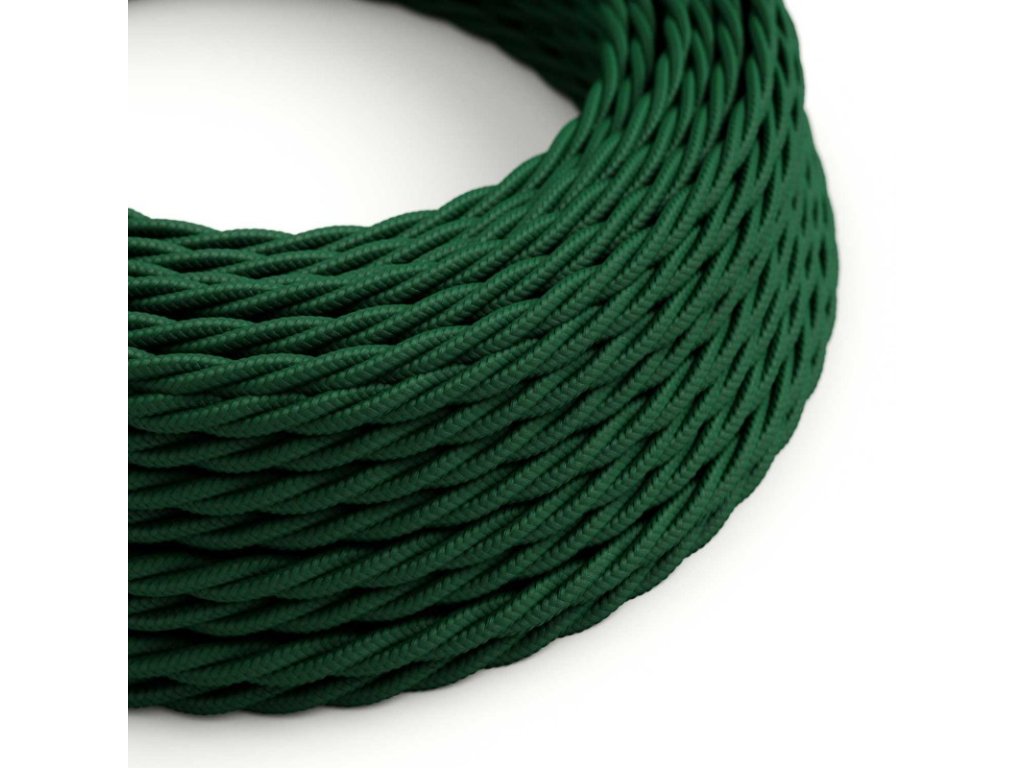 Skrútený hodvábny textilný elektrický kábel TM21 Tmavozelený FRRTX 300/300V 2x0,75 alebo 3x0,75 DVOJITÁ IZOLÁCIA (dodatočné transparentné puzdro) CEI 20-20 CEI 20-35 RoHS.