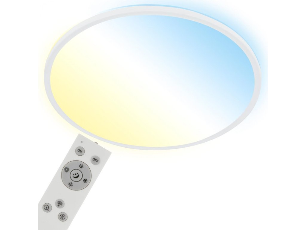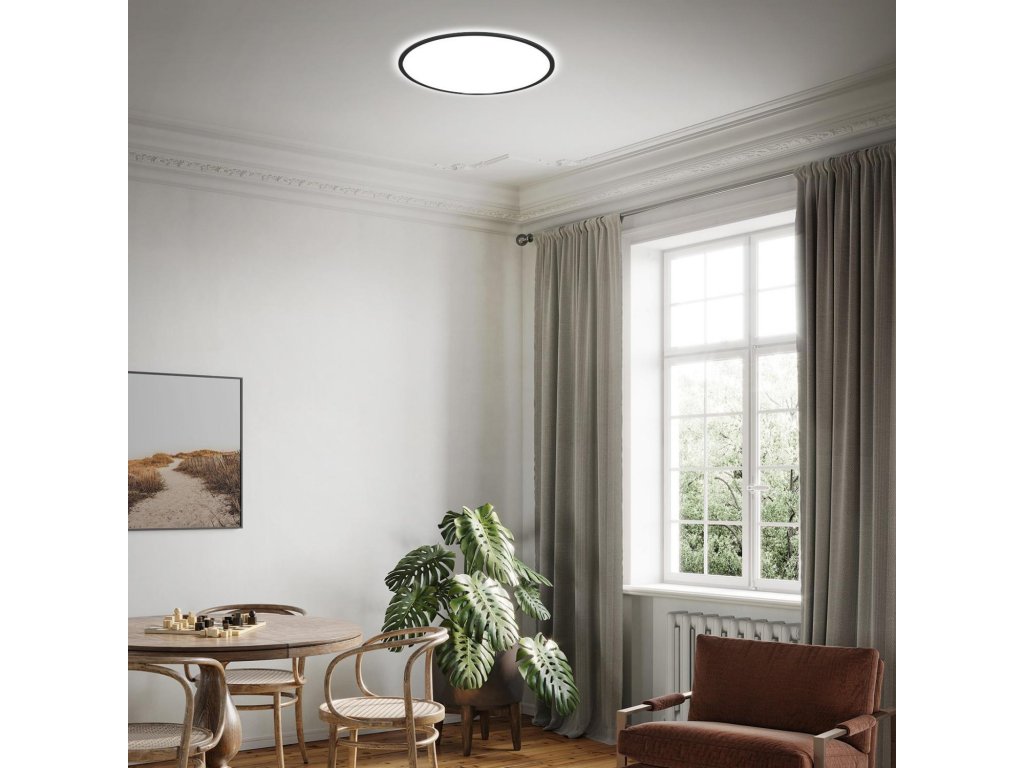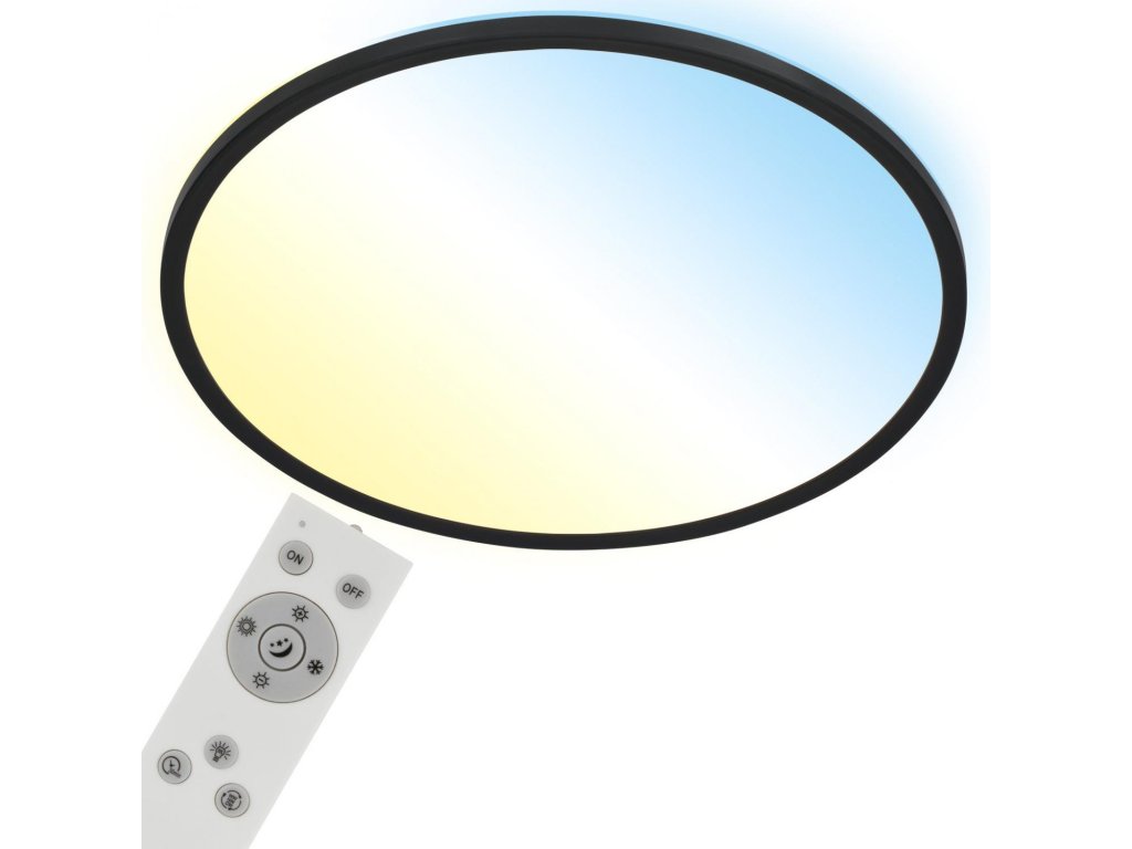 Ploché LED stropné svietidlo je ideálnym doplnkom do každého interiéru, vďaka svojmu jednoduchému dizajnu. Svietidlo je ponúkané v čiernej alebo bielej farbe. Integrovaný LED modul vydáva príjemné neoslňujúce svetlo. Nastavenie teploty farieb sa vykonáva pomocou diaľkového ovládača. Diaľkovým ovládačom je možné ovládať jednotlivé svetlá a skupiny svetiel. Môžete tiež meniť ich jas a farbu a ukladať ich pomocou funkcie pamäte. Svietidlo je ultraploché, jeho výška je iba 3 cm. Svietidlo je vhodné ako svetlenie obývacej izby, detskej izby, alebo aj hotelovej izby.