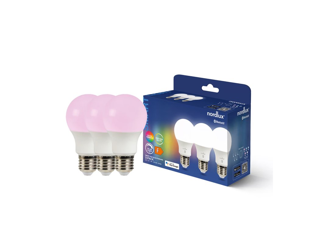 Set 3 ks smart žiaroviek s päticou E27 od spoločnosti NORDLUX, ktoré môžete sami ovládať. Nastavíte si vyžarovanie svetla od chladného až po teplé biele alebo si vyberiete z viac ako 16 miliónov farieb na vytvorenie útulnej atmosféry. Zároveň máte možnosť znížiť alebo zvýšiť jas (max. 806 lm). To všetko pomocou Vášho smartfónu či tabletu v ktorom si jednoducho a zadarmo stiahnete aplikáciu Nordlux Smart. Môžete tiež pridať diaľkové ovládanie (Smart Light Control) pre ovládanie svetiel bez smartfónu.Dodatočné parametre