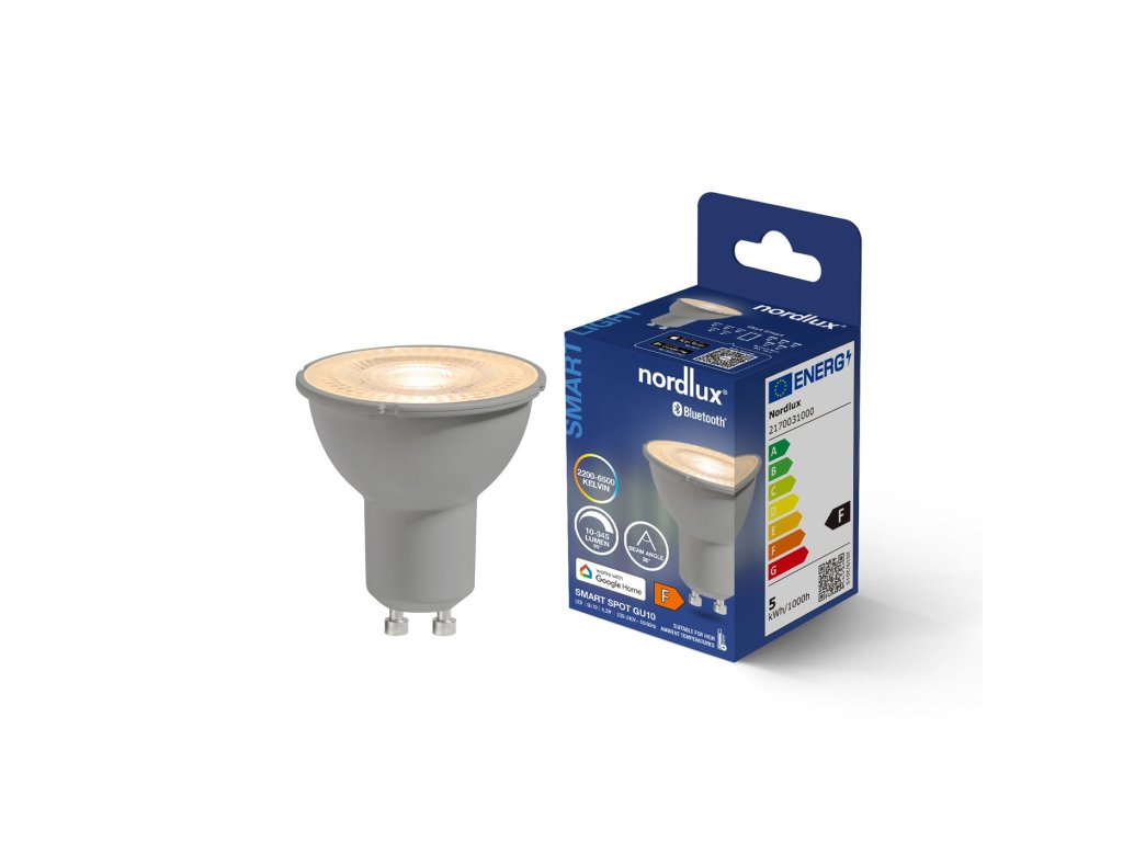 Žiarovka s päticou GU10, ktorá je novinkou na trhu. Prekvapí Vás svojou dlhou životnosťou (20.000 hodín) a môžete ju využiť aj do vonkajších uzavretých svietidiel, pretože má vyššiu tepelnú odolnosť. Navyše sa jedná o šikovnú žiarovku, ktorú je možné ovládať prostredníctvom Bluetooth vo Vašom mobilnom telefóne. Stačí ju iba inštalovať do svietidla a stiahnuť si aplikáciu Nordlux. Zdroj potom spárujete a už si jednoducho upravíte jas aj teplotu svetla od studenej po teplú. Pokiaľ by ste chceli ovládať viac svietidiel zároveň a nastaviť si rôzne svetelné scény, je nutné dokúpiť aj tzv. "bridge", ktorý funguje na Wi-fi a ktorý máme samozrejme aj v ponuke.Dodatočné parametre