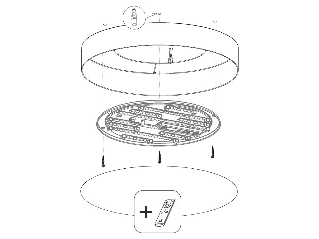 Moderné a elegantné stropné prisadené LED svietidlo Romao-Z s priemerom 57 cm a výškou 15cm, je osadené LED svetelným zdrojom. Súčasť balenia je diaľkový ovládač, na ovládanie svietidla. Diaľkový ovládač umožnuje voliť farbu svetla (od teplej cez neutrálnu až po studenú bielu). Svietidlo inštalujte do obývačky, spálne, detskej izby, pracovne, chodby, kuchyne alebo jedálne.