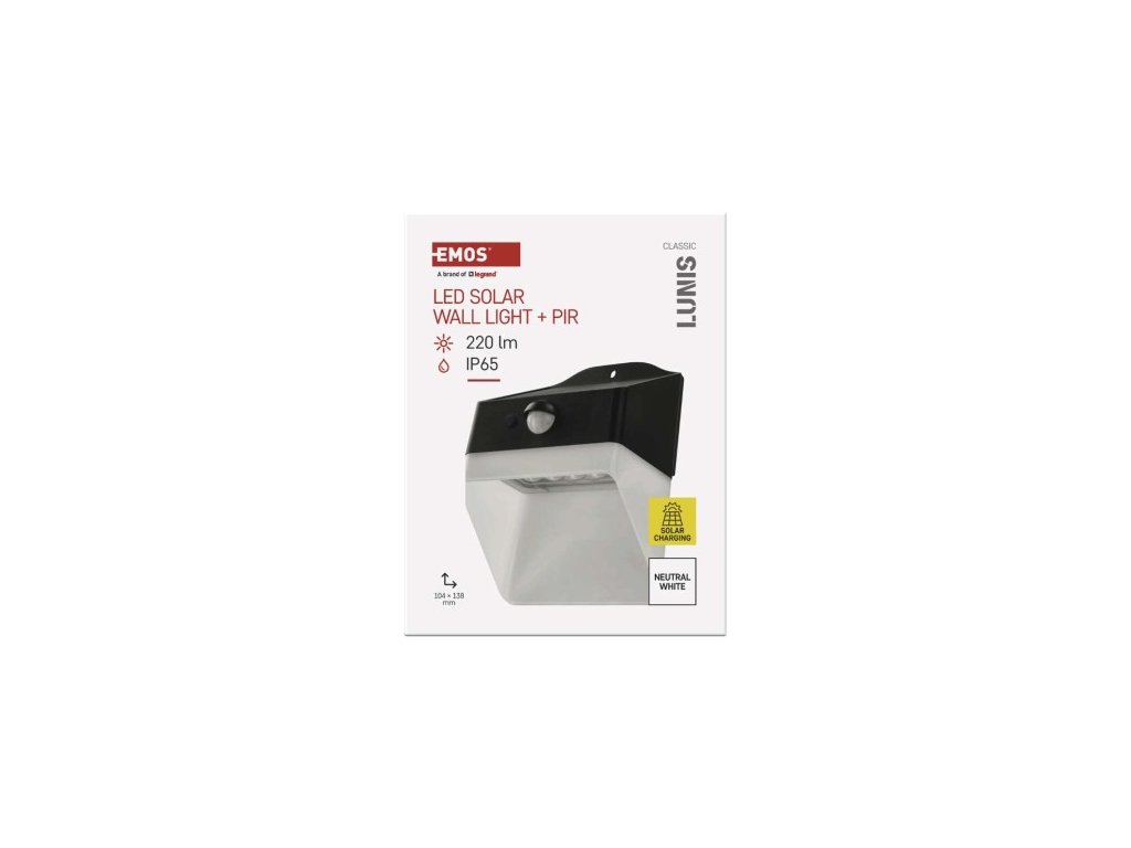 Solárne LED svietidlo LUNIS s pohybovým čidlom, čierne, neutrálna biela