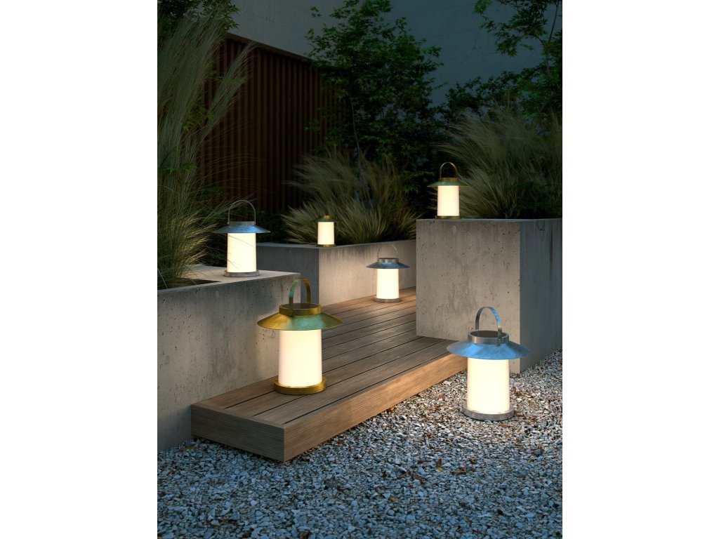 Temple je prenosná, solárne napájaná lampa od dánskeho dizajnéra Says Who, ktorá vyvažuje prvky klasickej lucerny s moderným, efektívnym dizajnom.