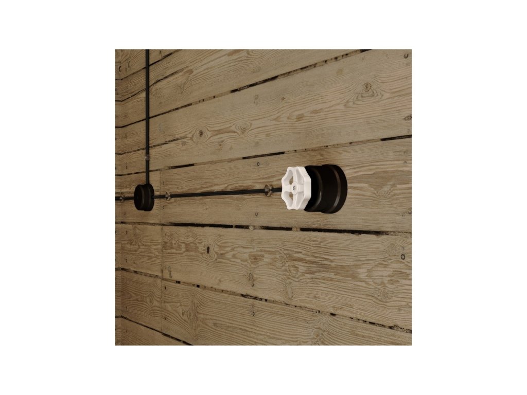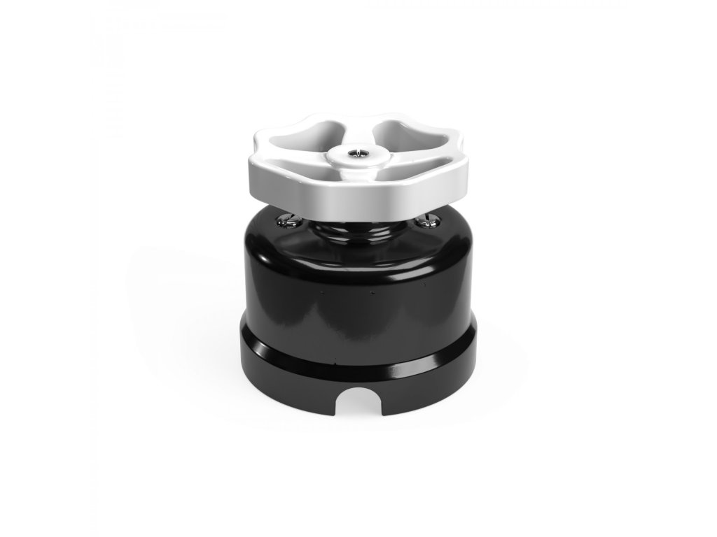 Čierny porcelánový elektrický vypínač je navrhnutý firmou Creative-Cables a pripomína klasický tvarvodovodného ventilu, pridávajúci vintage šarm a nadčasovú príťažlivosť výrobku. Okrem funkčnosti je tento prvok taktiež dekoratívny prvok, ktorý zvýrazňuje výzdobu a pridáva výraznú farbu: môžete si tiež vybrať zo širokej škály farieb, aby sa buď doplnili miestnosť alebo vytvorili zábavný kontrast.