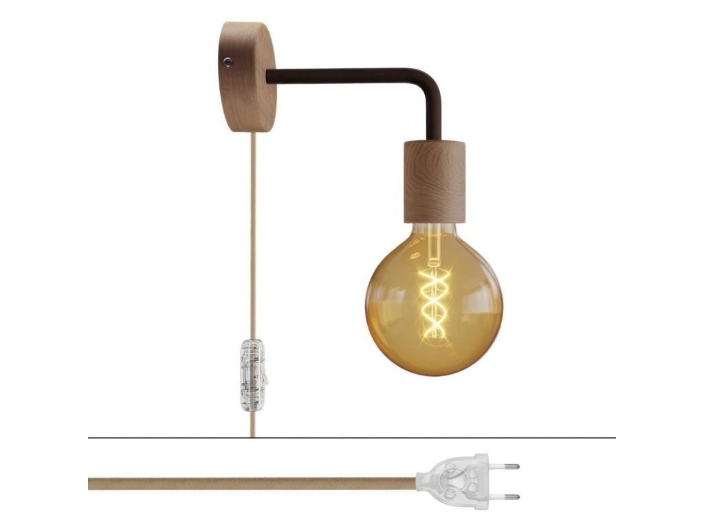 Spostaluce, nástenná drevená lampa s predĺžením do tvaru l s vypínačom a zástrčkou