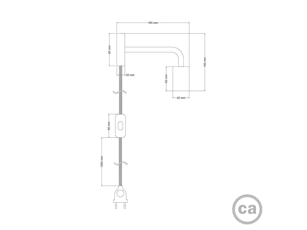 - Textilný kábel: 210 cm (150 cm od zástrčky k spínaču + 60 cm od spínača k baldachýnu) 2x0,75