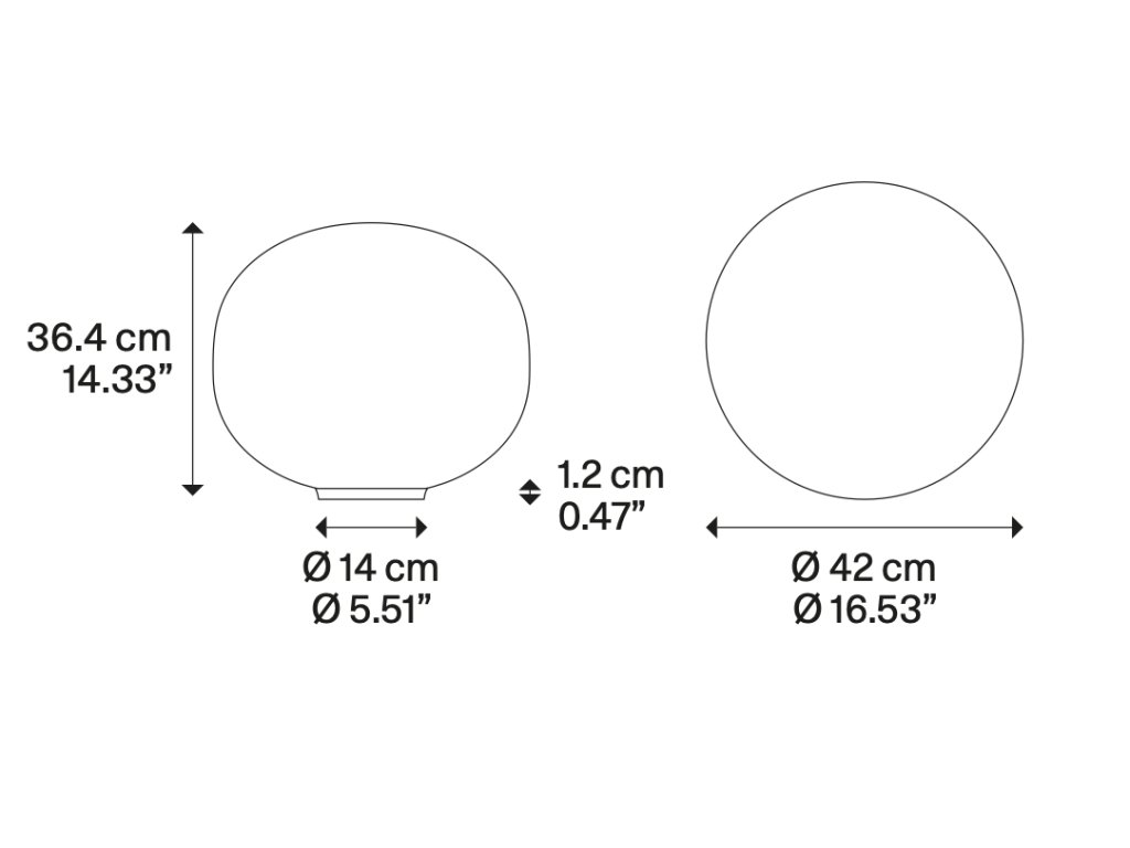 Difúzory zo skla s lesklým bielym povrchom rovnomerne rozptyľujú svetlo a sú dostupné v štyroch priemeroch: 14, 22, 29 a 42 cm.