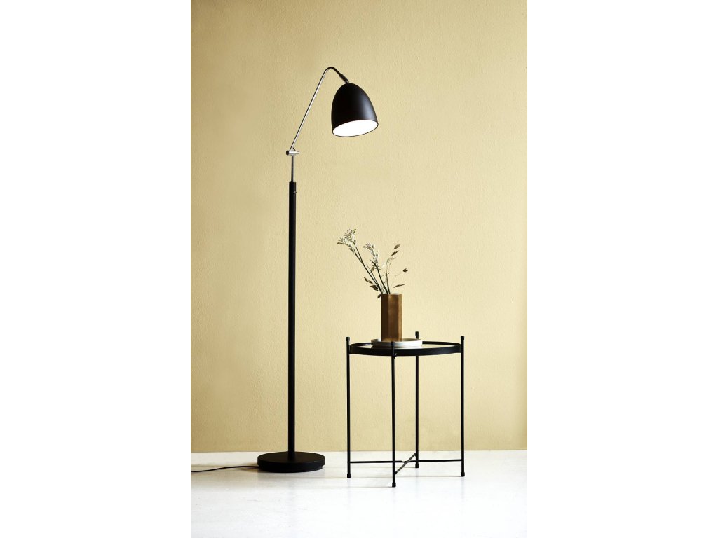 Žiarivé kovové detaily kombinované s hodvábnym matným povrchom robia svietidlo vysoko dekoratívnym. Spolu s oblým kovovým tienidlom poskytuje skvelé osvetlenie, kde design a funkčnosť sú úplne vyvážené. Vďaka kĺbu na kovovom ramene umožňuje nastaviť tienidlo podľa preferencií. V ponuke je k dispozícii čierna alebo biela.
