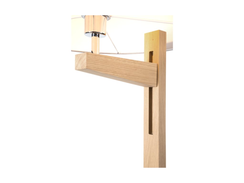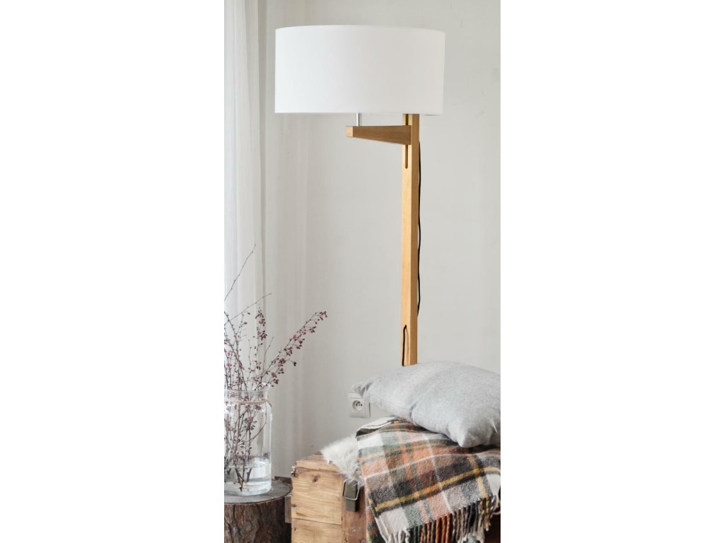 Klasická stojaca lampa ALINA sa skladá zo základne z moreného masívneho dubového dreva a látkového valcovitého tienidla.