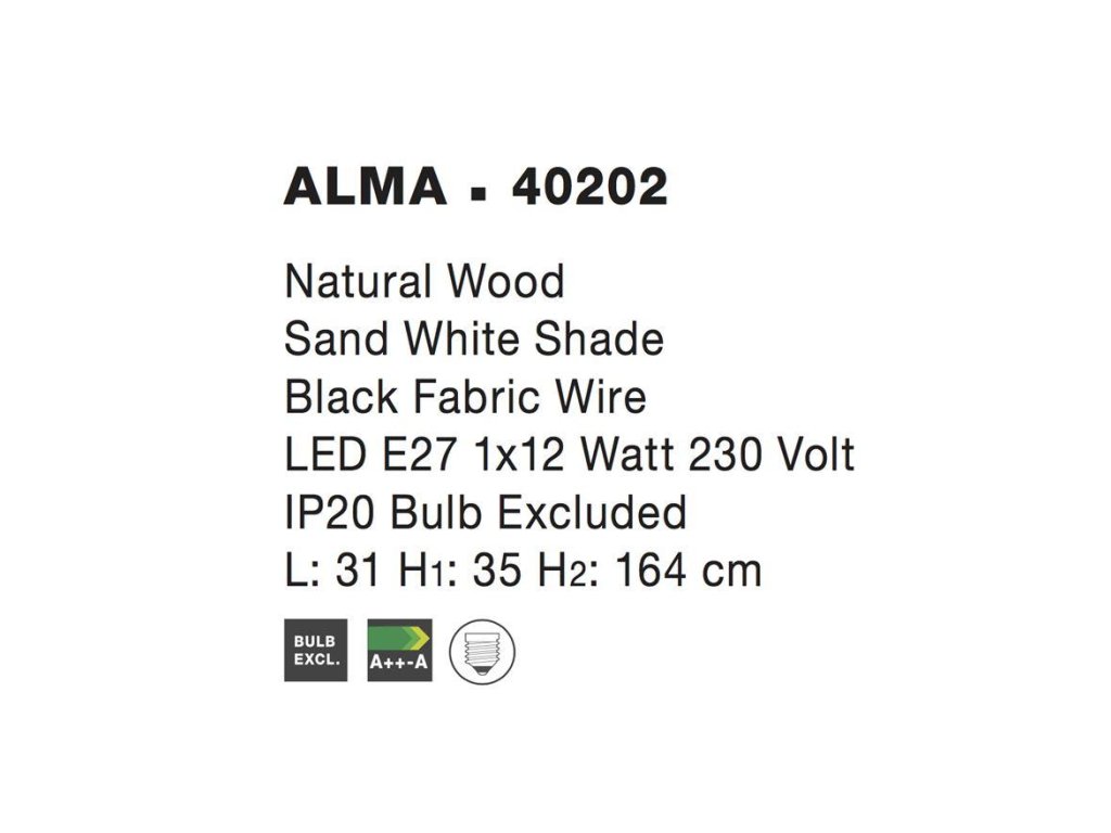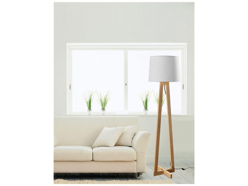 Stojacia lampa ALMA prírodná Drevo biele tienidlo čierny kábel E27 1x12W