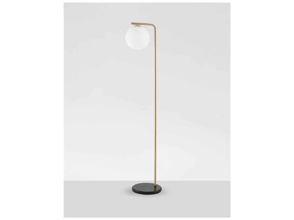 Stojacia lampa ALVAREZ saténový zlatý kov a čierny mramor biele opálové sklo E27 1x12W