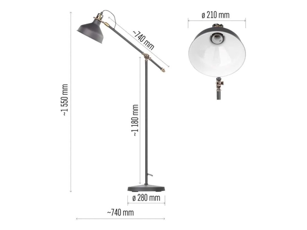 Stojacia lampa ARTHUR na žiarovku E27, 150cm, tmavo šedá