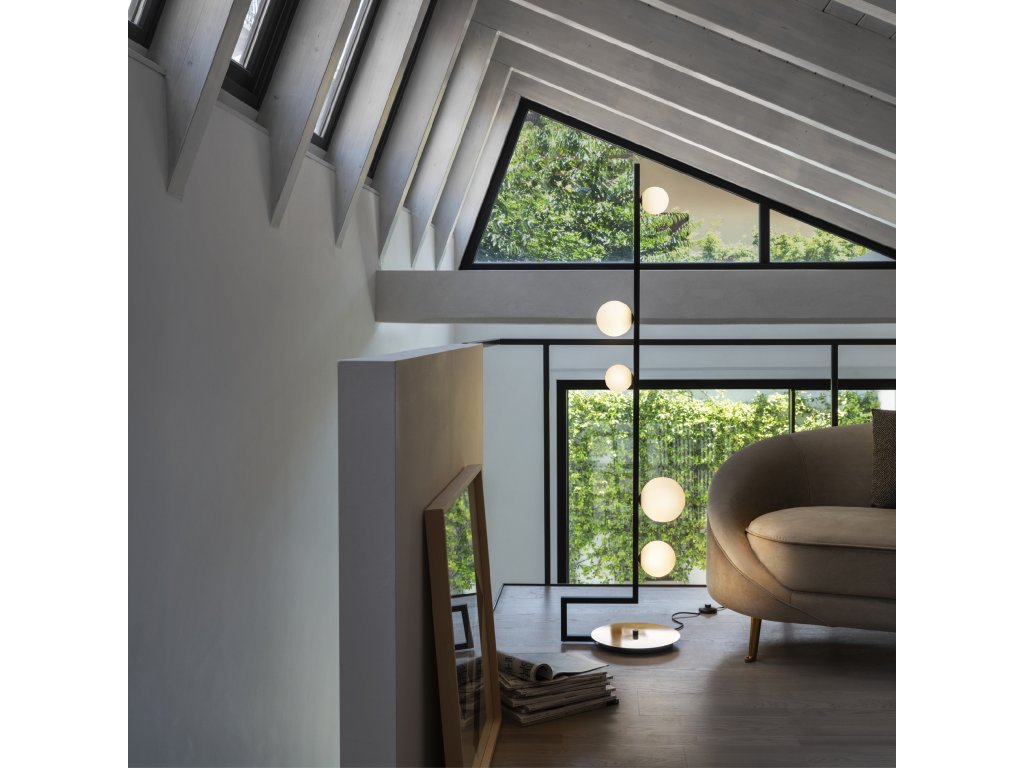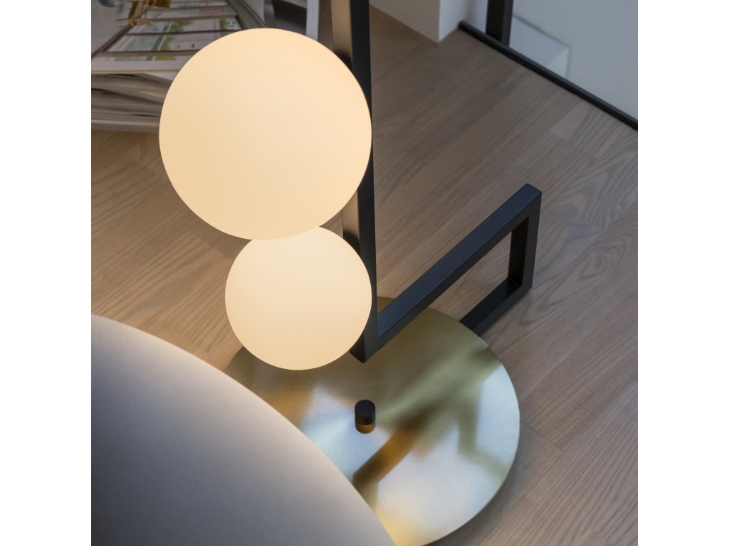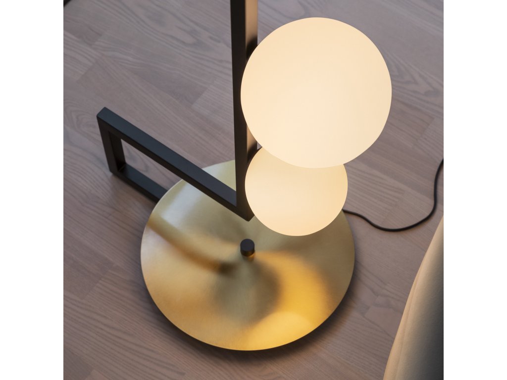 Stojacia lampa BIRDS z kolekcie dizajnového osvetlenia značky Ideal Lux sa bude skvele vynímať v každom moderne zariadenom interiéri. S krytím IP20 nie je vhodná do miestností s výskytom vyššej vlhkosti vzduchu. Okrúhla základňa s mosadznou povrchovou úpravou a matne čierny hranatý rám sú zhotovené z lakovaného kovu. Celý dizajn dopĺňa päť okrúhlych bielych difúzorov z fúkaného skla leptaného kyselinou, ktoré sú osadené päticou G9 pre žiarovky s maximálnym príkonom 5 x 15 W. Súčasťou balenia sú LED G9 žiarovky (obj. kód 209043) s príkonom 1 x 3 W so svietivosťou K (neutrálne žlté svetlo). Celkové rozmery svietidla sú 160 x 30 x 44 cm. Vypínač je umiestnený na prívodnom kábli. Je určená na napájanie zo siete na 220-240V.Dodatočné parametre