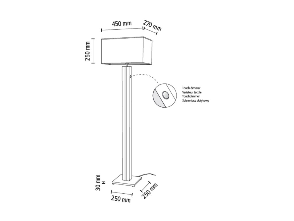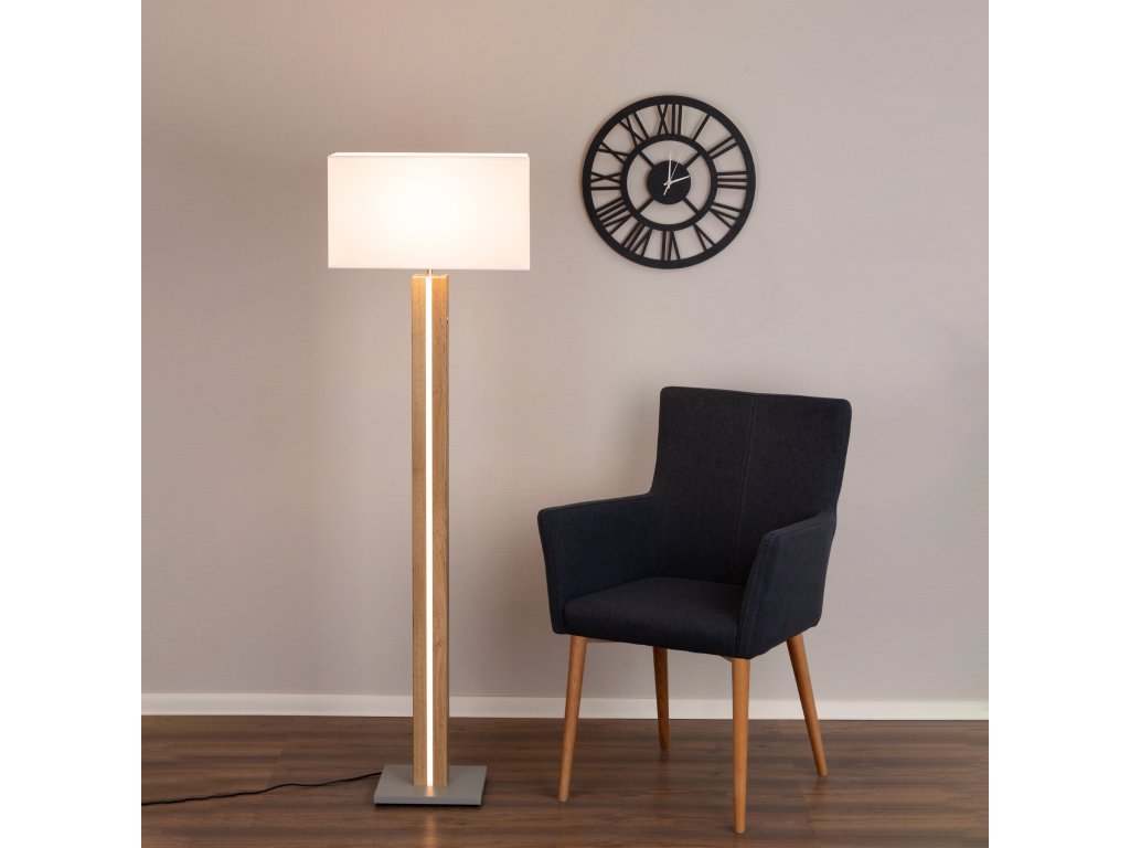 Klasická trochu masívnejšia stojaca lampa FLAME sa skladá základne a tela z MDF v tvare hranola, ktoré je pokryté dubovou dyhou, na ktorom je látkové hranaté tienidlo. Po celej dĺžke tela lampy je integrovaný LED zdroj, ktorý funguje ako svetelná dekorácia lampy.