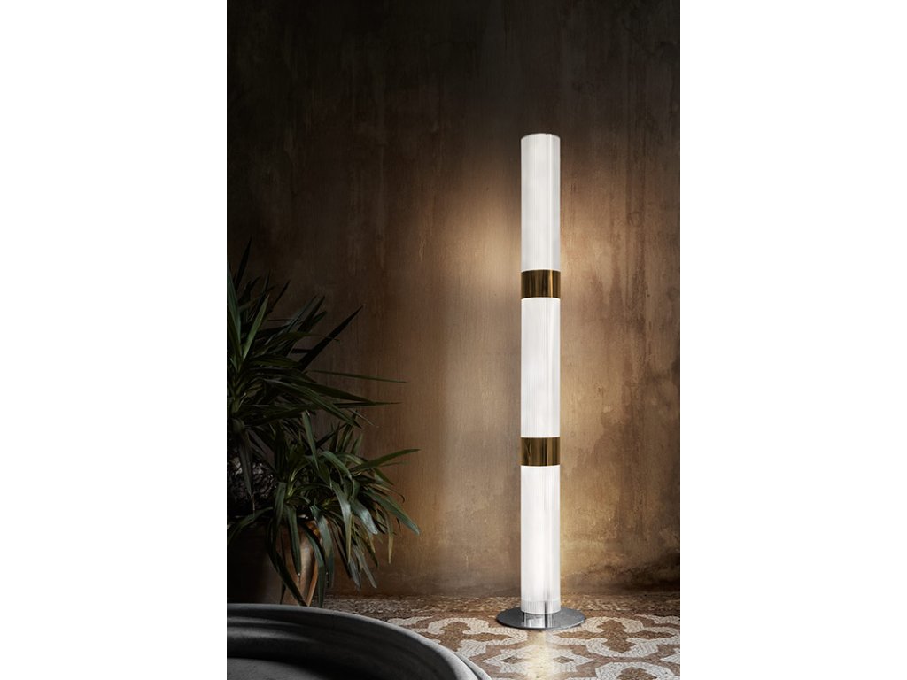 - stojacia lampa La Lollo, ktorá sa vyznačuje sofistikovaným chromatickým odtieňom, metalickou povrchovou úpravou vám umožňuje osvetliť a ozdobiť interiéry s všestrannosťou a eleganciou.