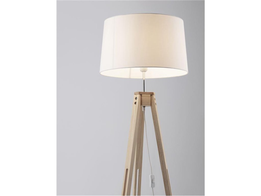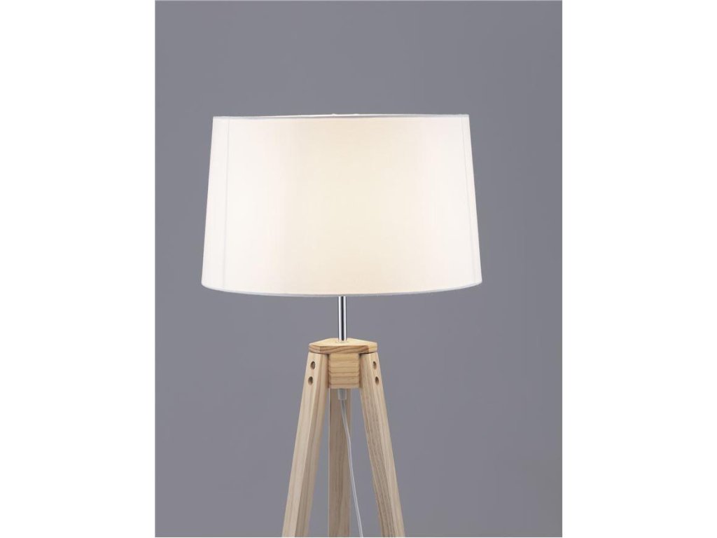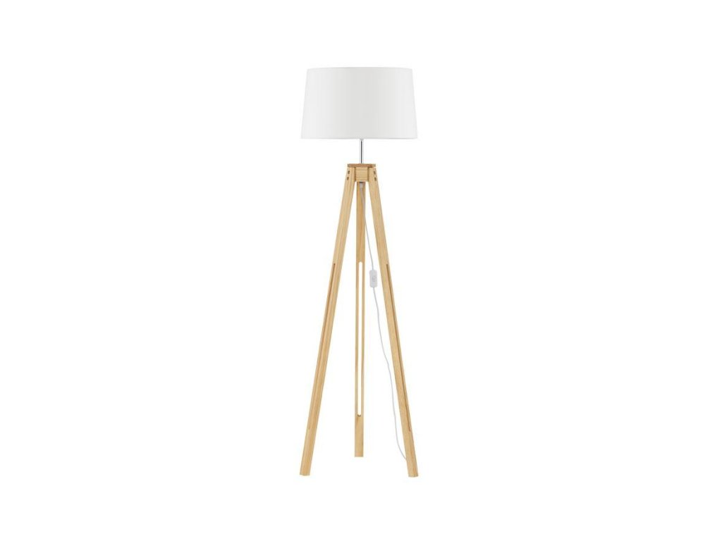 Stojacia lampa LE ROY biele tienidlo prírodná drevená základňa E27 1x12W