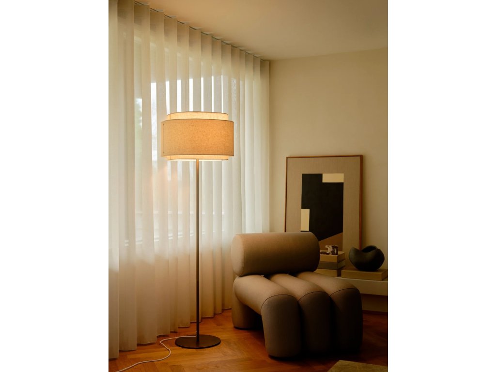 Zútulnite domov s Nordlux Takai: stojacia lampa s ľanovým tienidlom a mosadznou základňou ✔ Teplé svetlo ✔ Jemný kvalitný dizajn ✔ Doručíme bleskovo!