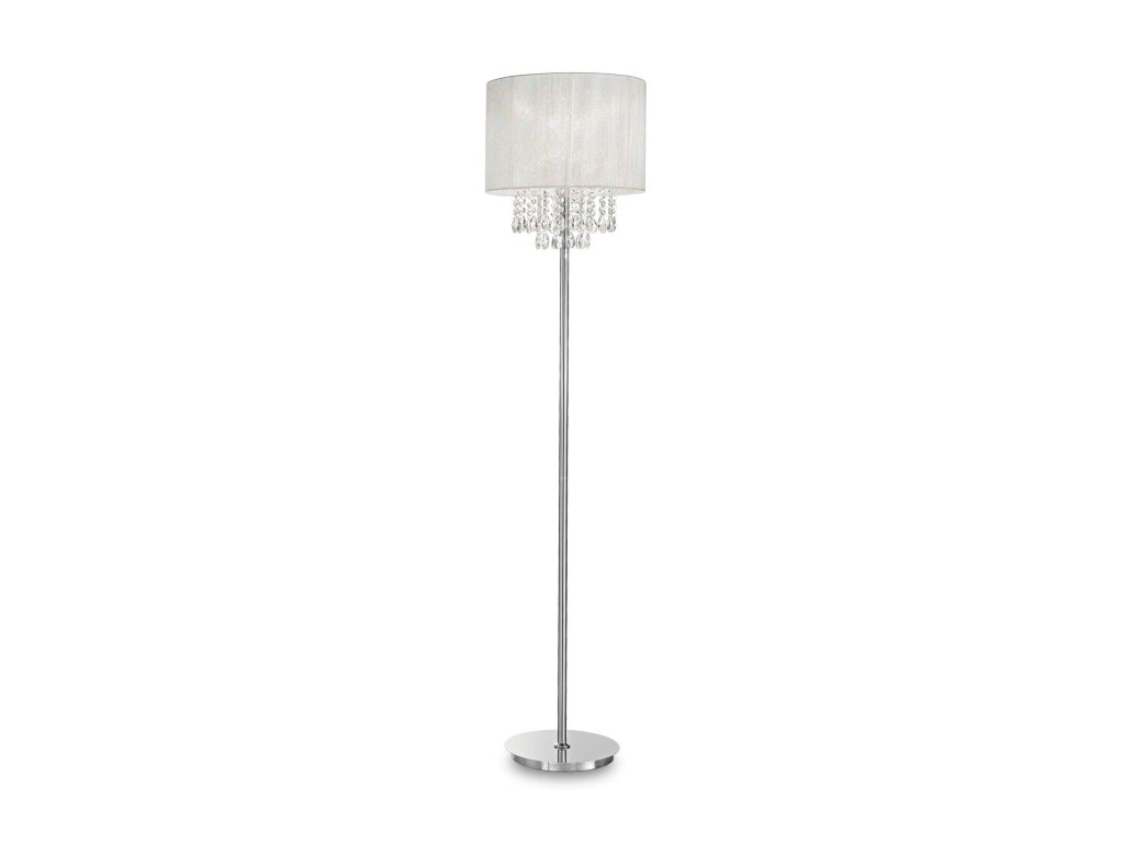 Luxusná stojacia lampa Opera z kolekcie interiérového osvetlenia značky Ideal Lux s výškou 163 cm vkusne doladí obývaciu izbu, spálňu alebo hotelový interiér. Lampu tvorí kovová základňa v chrómovej farbe, ktorú dopĺňa tienidlo s priemerom 38,5 cm z PVC fólie s metalickými nitkami a oveskami z brúseného krištáľu. Vnútri je svietidlo osadené päticou E27 o maximálnom príkone 1 x 60 W. Žiarovka nie je súčasťou balenia. Na úsporu elektrickej energie odporúčame použiť LED svetelný zdroj. Pre ľahké ovládanie je na svietidle integrovaný vypínač. Krytie IP20 vyjadruje vhodnosť na použitie do interiéru. Celkové rozmery sú 163 x 35 x 35 cm. Je určená na napájanie zo siete na 220-240 V.Dodatočné parametre