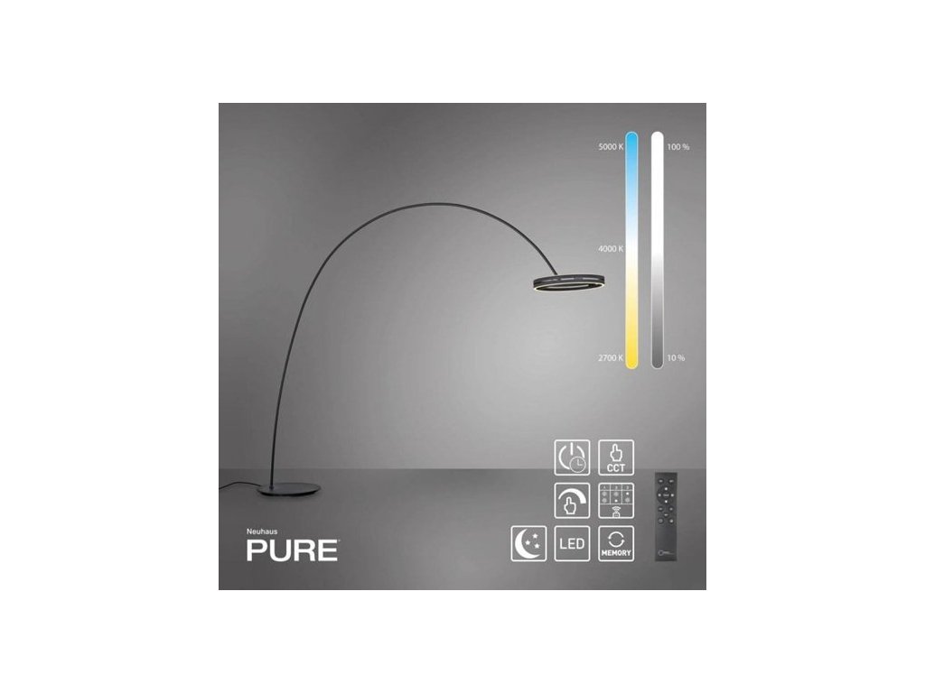 Stojacia lampa PURE Loop-Bow čierna 2xLED 20W 2200-5000K - Paul Neuhaus