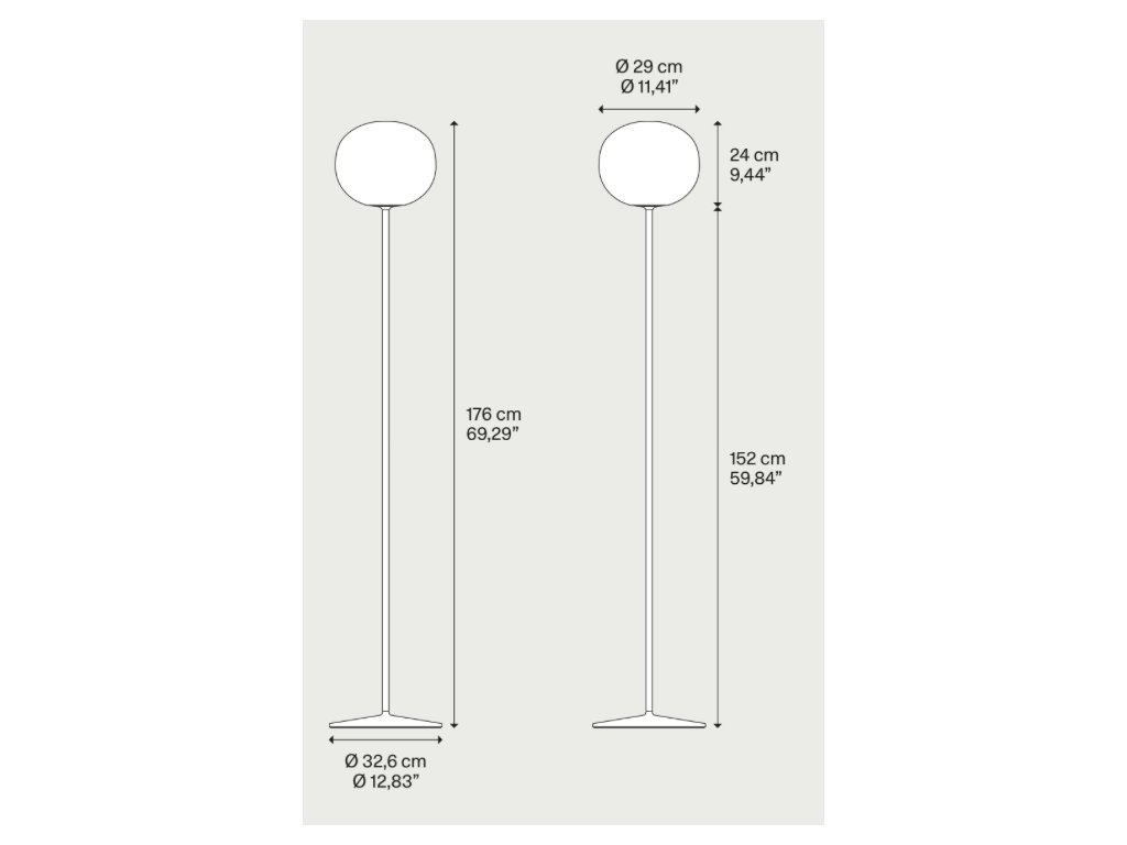 Difúzory zo skla s lesklým bielym povrchom rovnomerne rozptyľujú svetlo a sú dostupné v štyroch priemeroch: 14, 22, 29 a 42 cm.