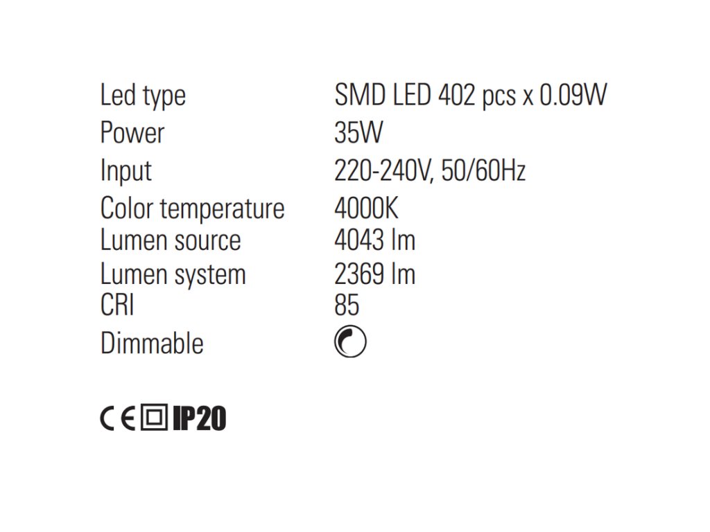 - LED zdroje i transformátor sú súčasťou svietidla a nedajú sa vymeniť