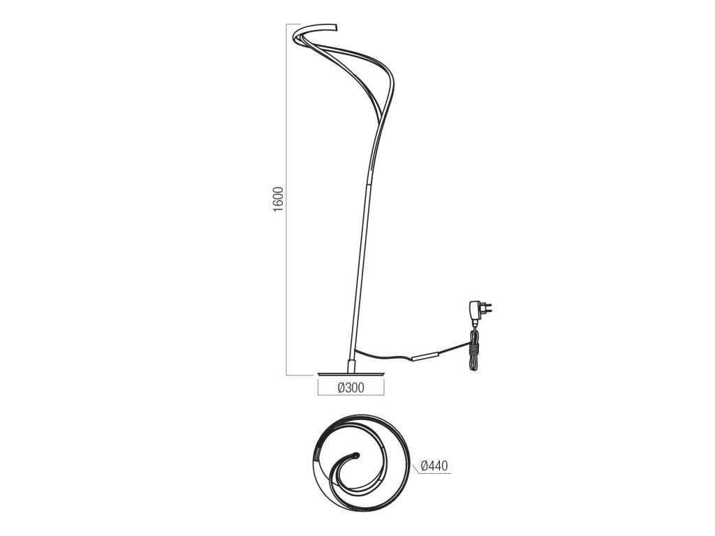 Stojace stmievateľné svietidlo do interiéru, osadené SMD LED diódami, kovová a hliníková konštrukcia elektrostaticky lakovaná pieskovo čiernou, bielou alebo zlatou farbou, biely PVC difúzor.