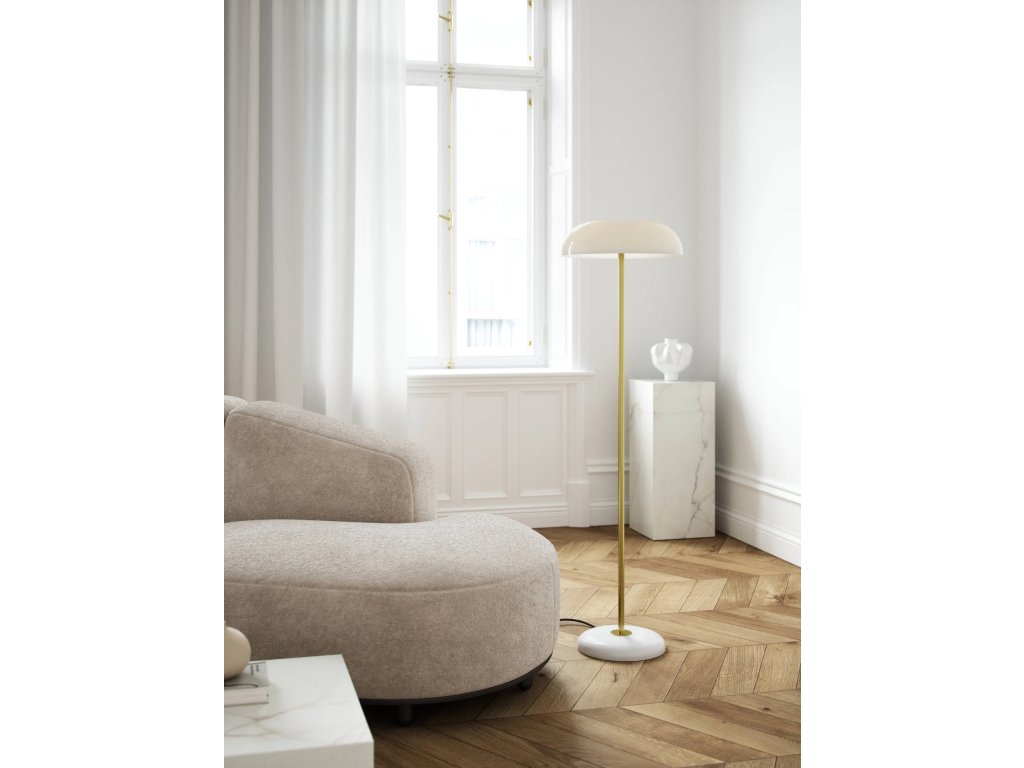Glossy je stelesnením vkusného a sofistikovaného designu. Dánska dizajnérka Maria Berntsen vytvorila stojaciu lampu, ktorá vyžaruje severský minimalizmus, kde kombinácia exkluzívnych materiálov, ako je mramor, kartáčovaná mosadz a opálovo biele sklo, prispieva k neuveriteľne elegantnému dizajnu. Názov Glossy je odvodený od lesklého povrchu opálovo bieleho skla, ktoré prepúšťa jemné a príjemné svetlo.