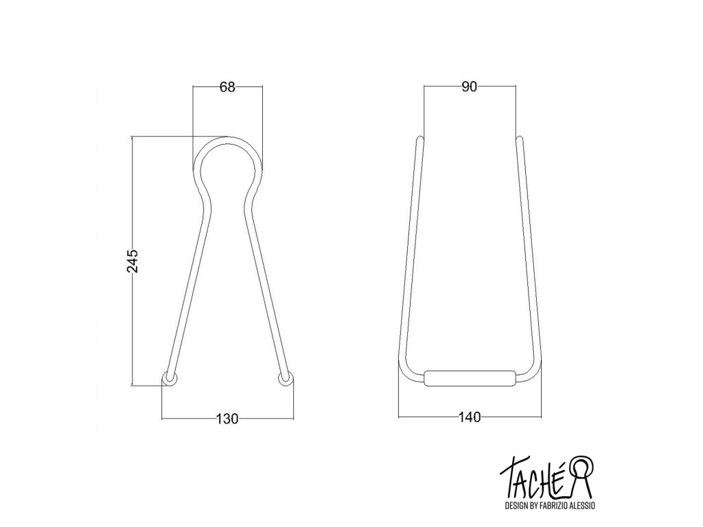 Nápaditá, moderná a dômyselná: to je stolná lampa zrodená zo stretnutia originálneho stojana na žiarovky Taché, ktorý vytvoril dizajnér Fabrizio Alessio a skompletizovaných káblov Snakebis. Taché je inšpirovaná jedným z najobdivovanejších predmetov vo svete designu: kancelárskou sponkou, ktorú si nechal v r. 1899 patentovať William Middlebrook. Jej jednoduchosť a eleganciu Taché kopíruje.