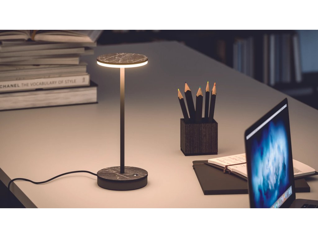Stolní lampa je k dispozici v řecké černé nebo sochařské černé barvě, lze ji stmívat pomocí speciálního tlačítka na podstavci a kombinuje pozoruhodný světelný výkon s estetikou, která se hodí k jakémukoli stolnímu povrchu, ať už se jedná o minimalistický stůl v moderní pracovně nebo starožitný stůl v klasickém stylu.